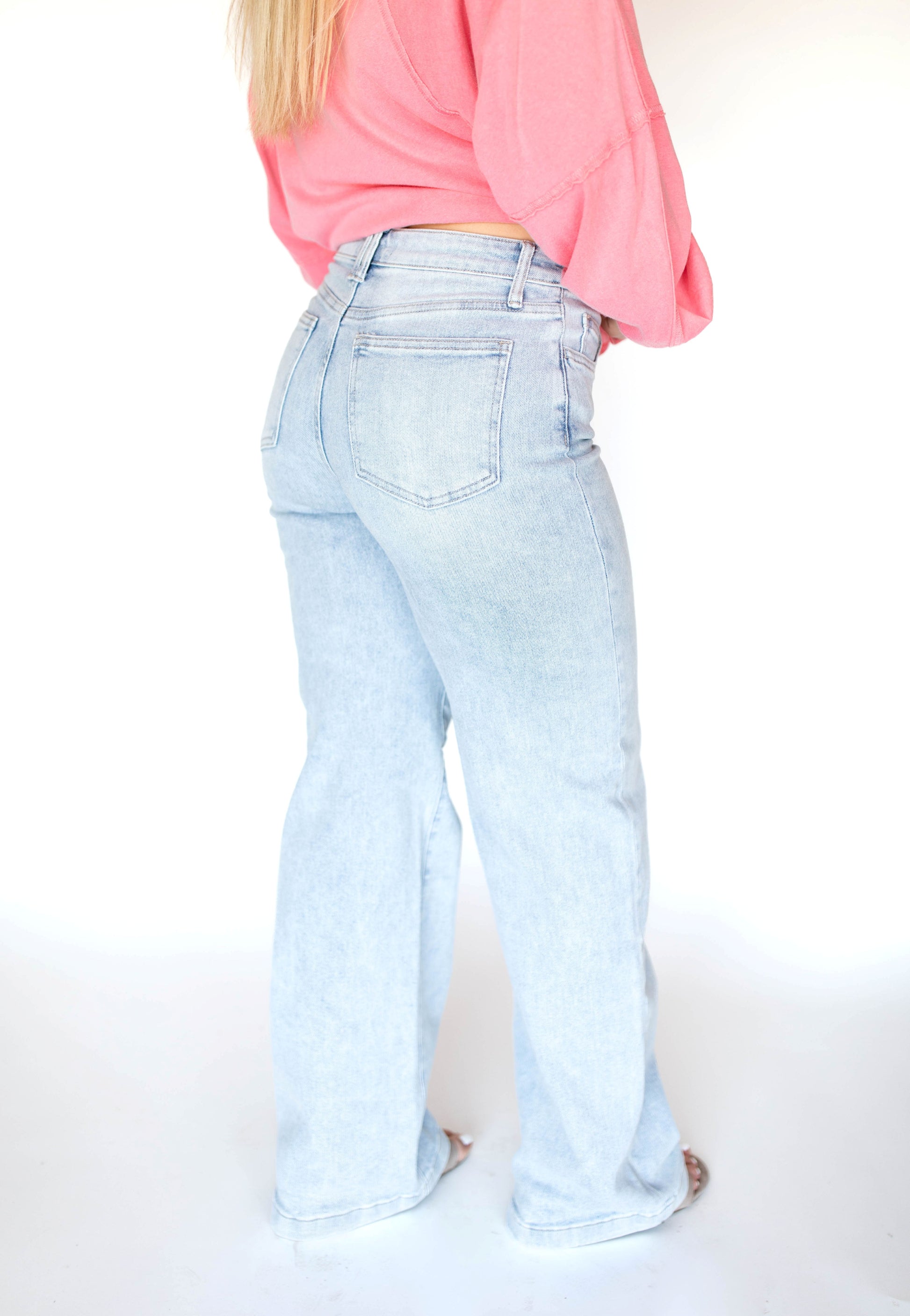 Fall in love with denim all over again in the Wide Leg Romance jeans — your new go-to for a flattering, feminine fit with just the right touch of drama. These high-rise, full-length jeans feature a dreamy light wash with no distressing, making them effortlessly versatile for both casual days and dressed-up nights.